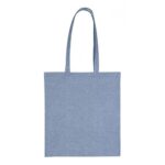 Katoenen draagtas gemaakt van 140 grams blauw gerecycled katoen. De draagtas is voorzien van 2 schouderhengsels die zijn aangestikt aan de binnenzijde van de draagtas.