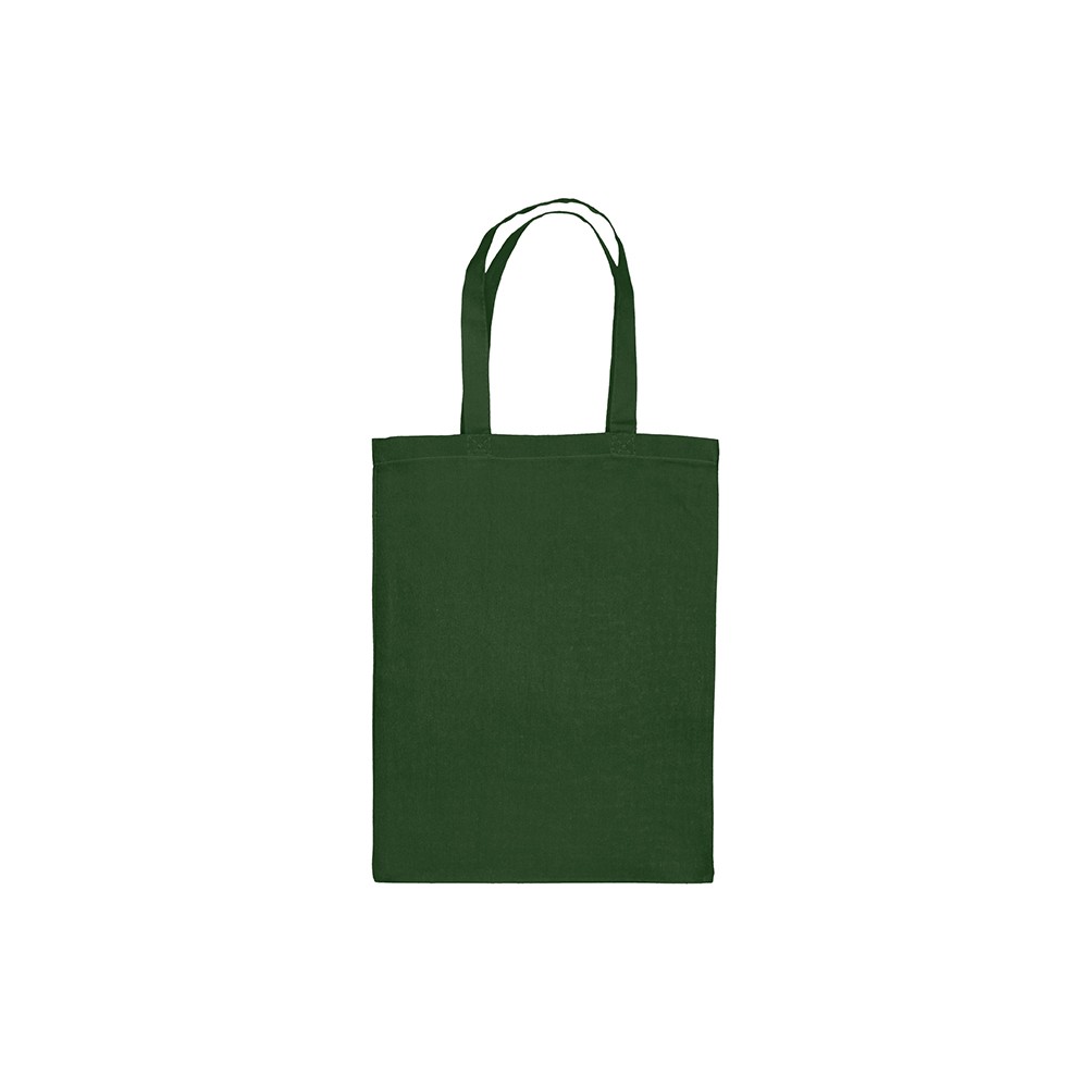 Katoenen draagtas gemaakt van 140 grams donkergroen katoen. De draagtas is voorzien van 2 korte handgrepen die zijn aangestikt aan de binnenzijde van de draagtas.