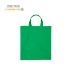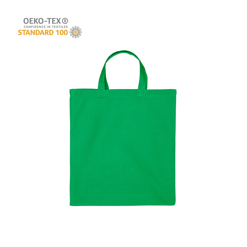 Katoenen draagtas gemaakt van 140 grams groen katoen, Oeko-tex 100 gecertificeerd. De draagtas is voorzien van 2 korte handgrepen die zijn aangestikt aan de binnenzijde van de draagtas.