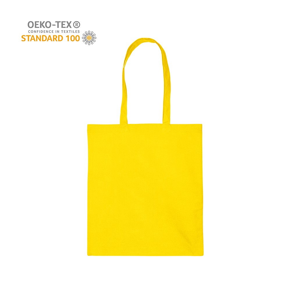 Katoenen draagtas gemaakt van 140 grams geel katoen, Oeko-tex 100 gecertificeerd. De draagtas is voorzien van 2 schouderhengsels die zijn aangestikt aan de binnenzijde van de draagtas.