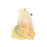 Katoenen groente en fruittas net gemaakt van 115 grams Fair Trade 100% organic. De fruittas is voorzien van een trekkoorden voor het sluiten van de tas.