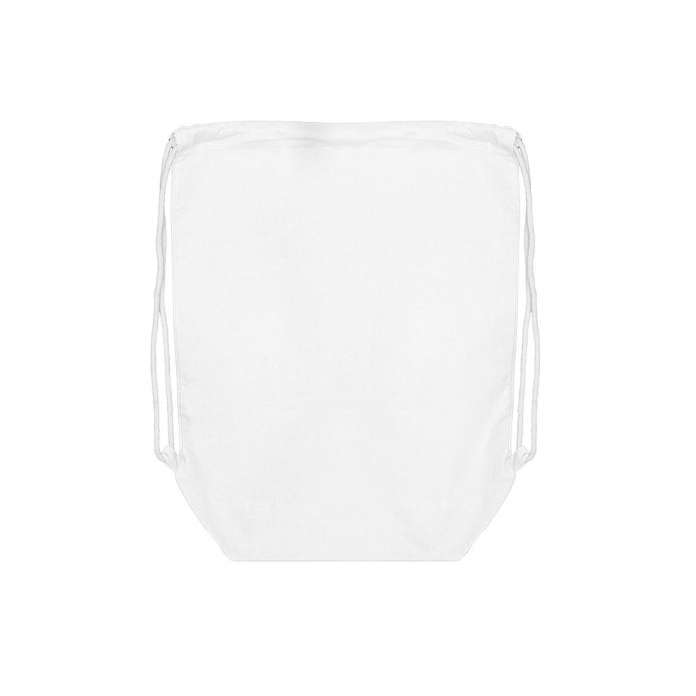 Katoenen rugtas gemaakt van 140 grams wit katoen. De rugtas is voorzien van 2 trekkoorden voor het sluiten van de rugtas.