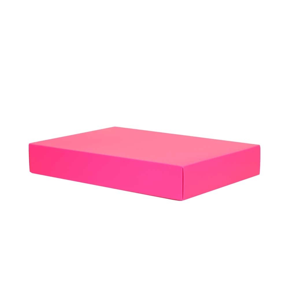 Luxe tweedelige geschenkdoos gemaakt van 500 g/m² roze mat gelamineerd karton. De luxe geschenkdoos wordt plano (ruimtebesparend) in 2 delen geleverd en is eenvoudig te assembleren.