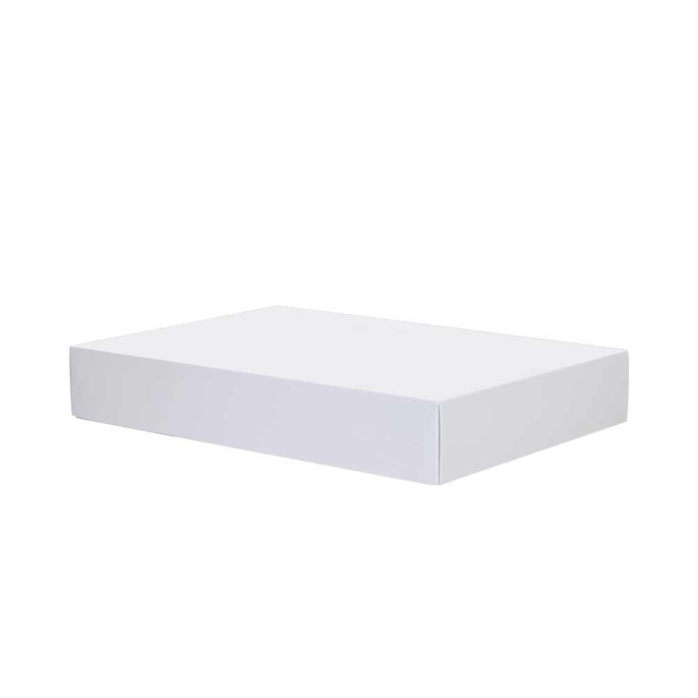 Luxe tweedelige geschenkdoos gemaakt van 500 g/m² wit glans gelamineerd karton. De luxe geschenkdoos wordt plano (ruimtebesparend) in 2 delen geleverd en is eenvoudig te assembleren.