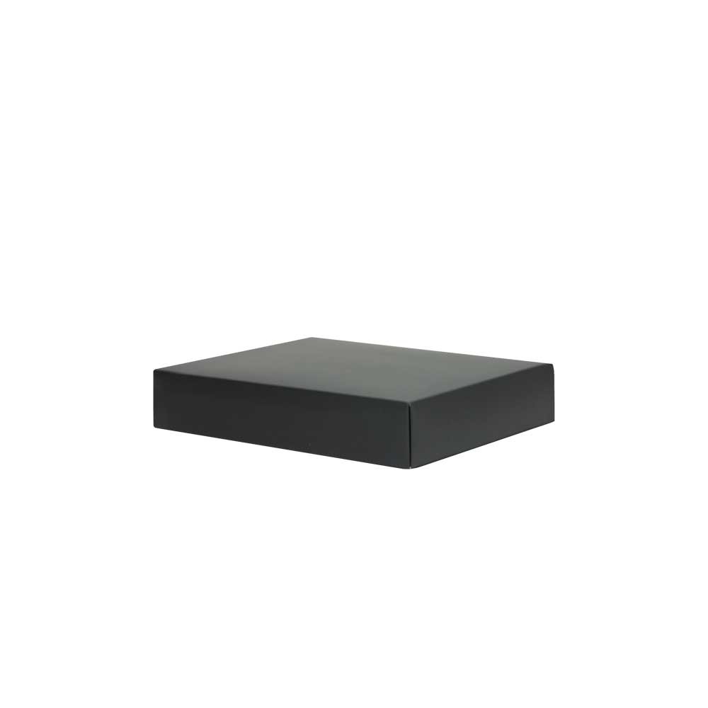 Luxe tweedelige geschenkdoos gemaakt van 500 g/m² zwart mat gelamineerd karton. De luxe geschenkdoos wordt plano (ruimtebesparend) in 2 delen geleverd en is eenvoudig te assembleren.