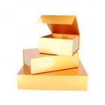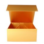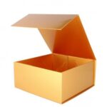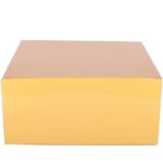 De luxe gouden magneetdoos, 22x22x10 cm – goud glans – geschikt voor diverse producten zoals accessoires en kleding, heeft een sluitende magnetische klep en is gemaakt van hard karton van 1300g/m². Deze gouden geschenkdoos wordt plano aangeleverd en is gemakkelijk in elkaar te zetten met de plakstrips in de hoekjes.
