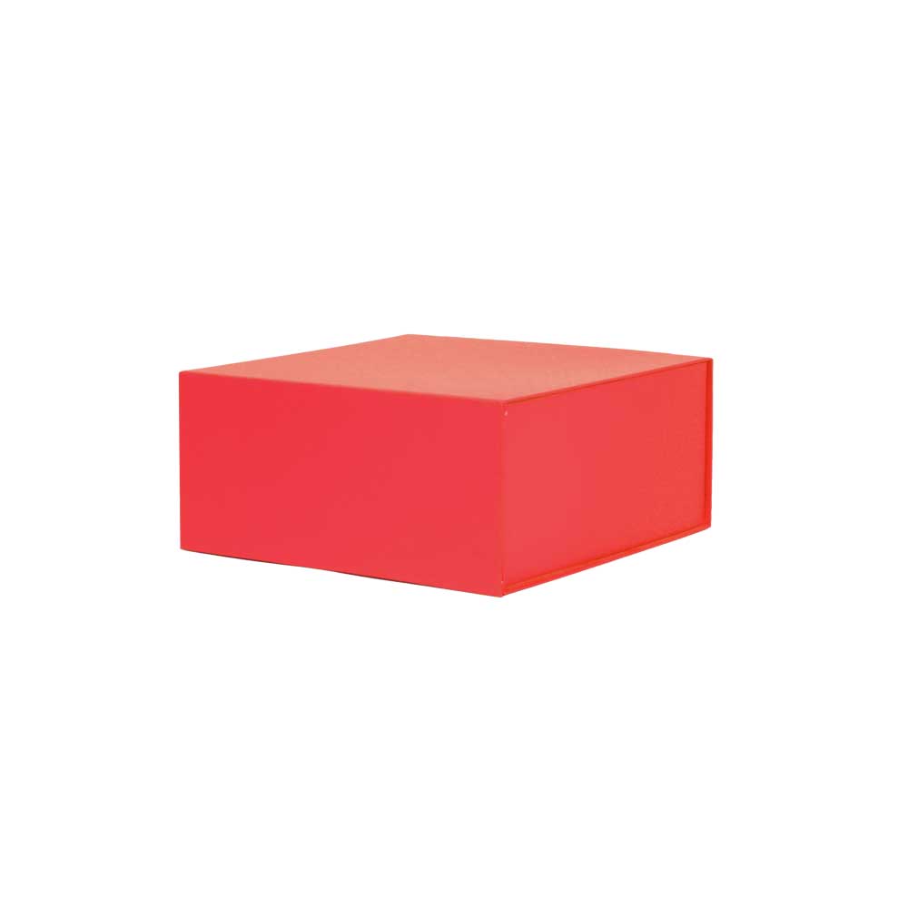 Luxe magneetdoos met automatische montage en magnetische klepsluiting, gemaakt van stevig 1200 g/m² mat gelamineerd rood bedrukt karton. De luxe magneetdoos is voorzien van zelfklevende strips die zorgen voor een permanente montage. De luxe magneetdoos wordt plano en dus ruimtebesparend geleverd.
