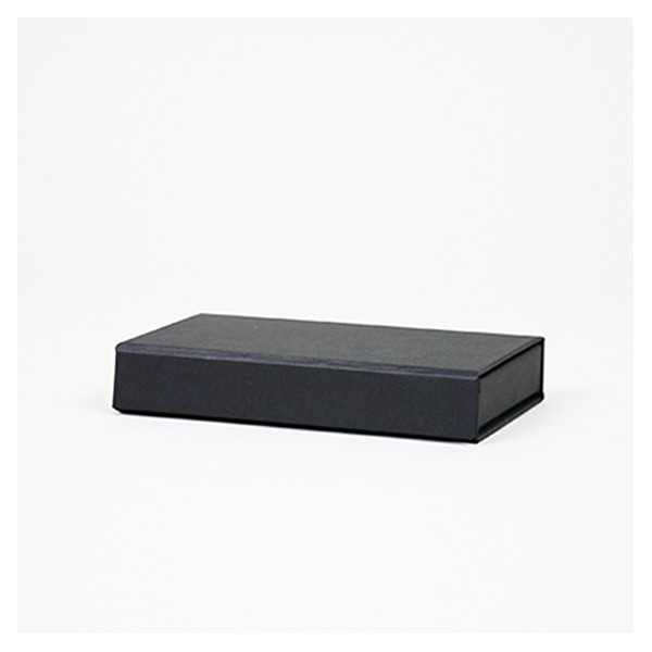 De luxe magneetdoos, 12x2x7 cm – zwart kraft – voor kadobon, klantenkaart of creditcard, met inlay, heeft een sluitende magnetische klep en is gemaakt van hard karton van 1200g/m² en bevat een kartonnen steunstuk.
