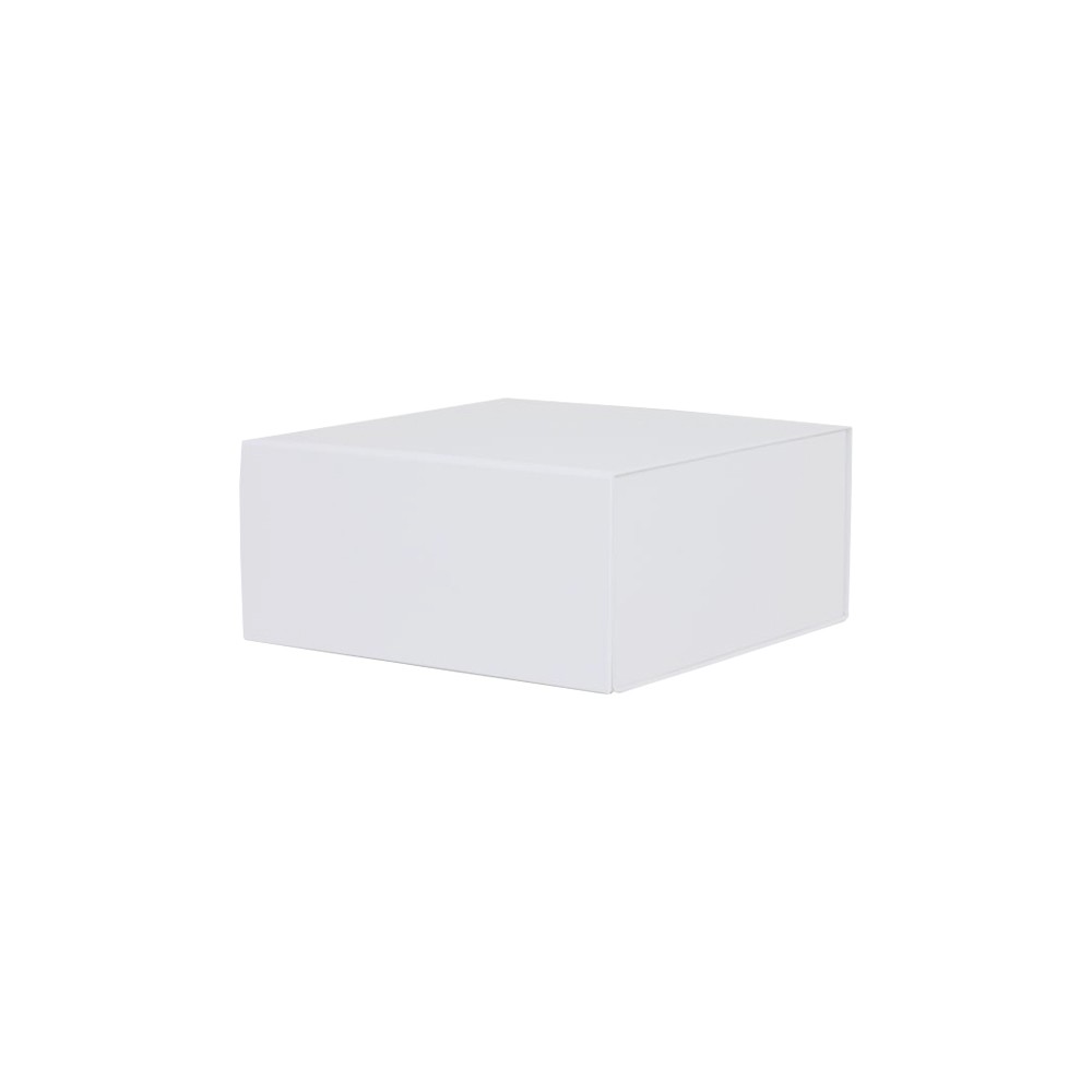 Luxe magneetdoos met automatische montage en magnetische klepsluiting, gemaakt van stevig karton van 1200 g/m², aan de binnen- en buitenkant bedekt met 120 g/m² wit geverfd kraftpapier, voor een totaal van 1440 g/m². De luxe magneetdoos is voorzien van zelfklevende strips die zorgen voor een permanente montage. De luxe magneetdoos wordt plano en dus ruimtebesparend geleverd.