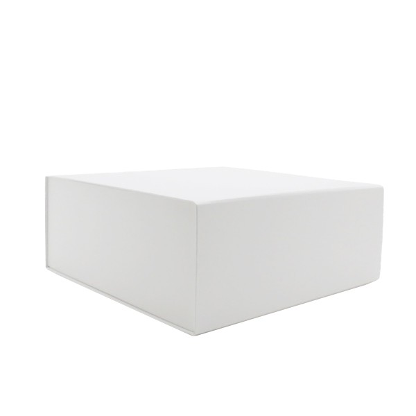 Luxe magneetdoos met automatische montage en magnetische klepsluiting, gemaakt van stevig 1200 g/m² wit karton. De luxe magneetdoos is voorzien van zelfklevende strips die zorgen voor een permanente montage. De luxe magneetdoos wordt plano en dus ruimtebesparend geleverd.