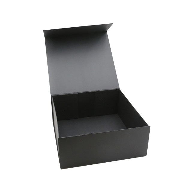Luxe magneetdoos met automatische montage en magnetische klepsluiting, gemaakt van stevig 1200 g/m² zwart karton. De luxe magneetdoos is voorzien van zelfklevende strips die zorgen voor een permanente montage. De luxe magneetdoos wordt plano en dus ruimtebesparend geleverd.