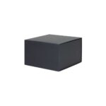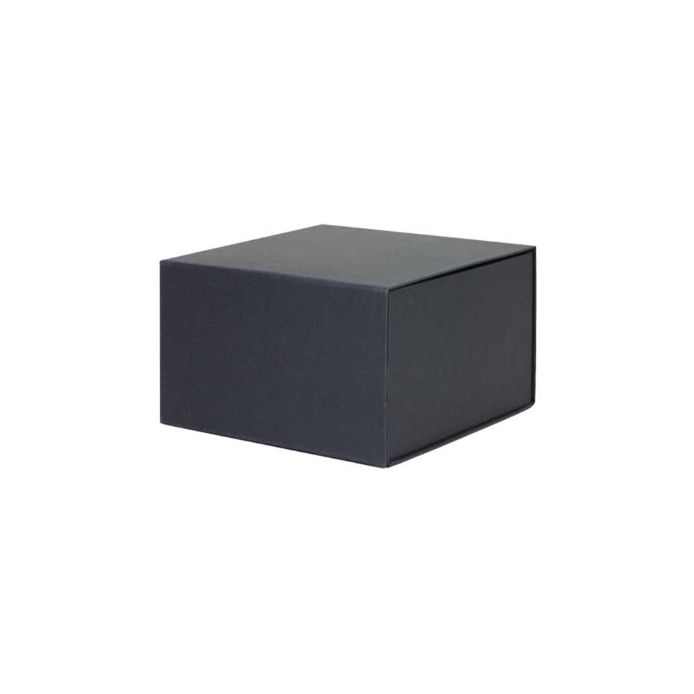 Luxe magneetdoos met automatische montage en magnetische klepsluiting, gemaakt van stevig karton van 1200 g/m², aan de binnen- en buitenkant bedekt met 120 g/m² zwart geverfd kraftpapier, voor een totaal van 1440 g/m². De luxe magneetdoos is voorzien van zelfklevende strips die zorgen voor een permanente montage. De luxe magneetdoos wordt plano en dus ruimtebesparend geleverd.