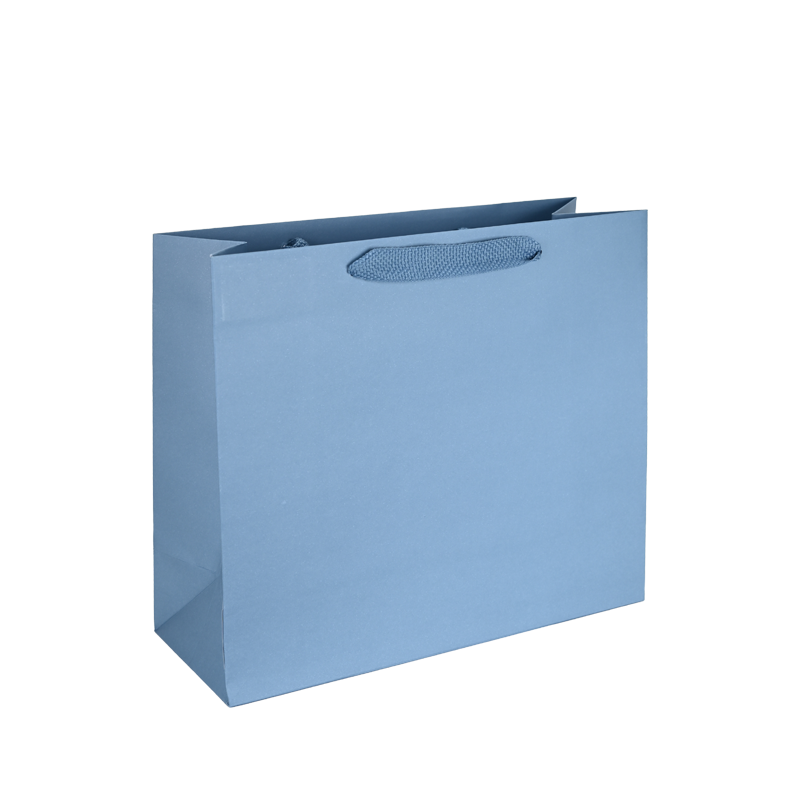 Luxe papieren draagtas – katoenen linten – omgeslagen bovenrand – Jeans blauw