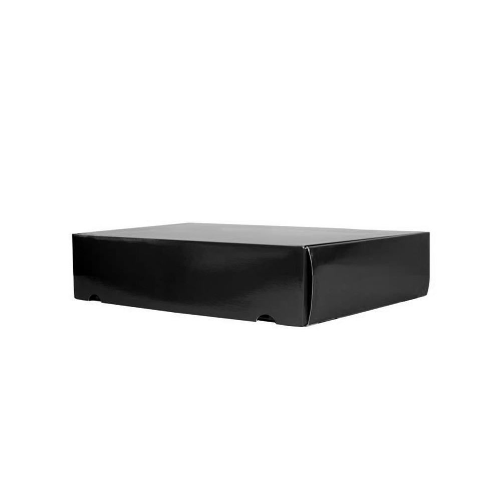 Luxe verzenddoos gemaakt van 700 g/m2 zwart bedrukt golfkarton met een dikte van 2 mm en voorzien van een krasbestendig glans laminaat. De luxe verzenddoos wordt eendelig plat geleverd en is zeer gemakkelijk in elkaar te zetten.