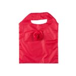 Opvouwbare polyester draagtas gemaakt van 210T rood polyester. De draagtas is voorzien van twee korte rode handgrepen en trekkoord sluiting op de tas. De tas is op te vouwen tot een opbergzakje in de vorm van een roos.