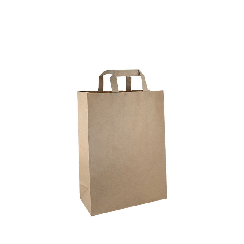 Papieren draagtas platte handgreep – Bruin – gerecycled kraft