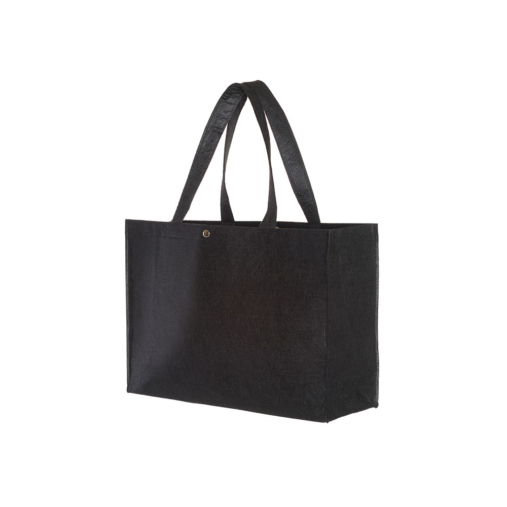Vilten draagtas met een metalic drukknoop voor het sluiten van de draagtas. De draagtas is voorzien van 2 vilten schouderhengsels en gemaakt van 220 grams vilt.